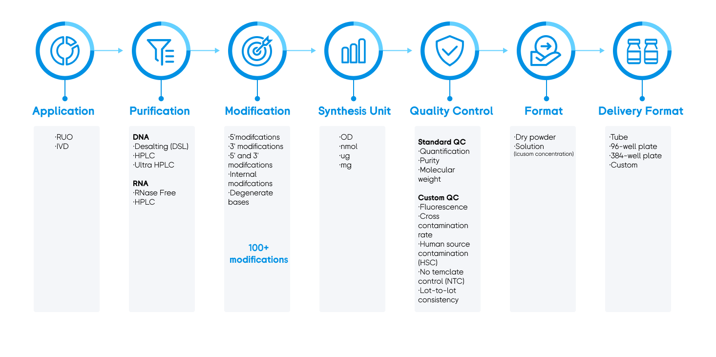 With years of expertise in DNA synthesis technology, GCATbio provides customers with superior quality and excellent service in oligo synthesis, with extensive applications in high-throughput sequencing, molecular diagnostics, gene editing, drug development etc.